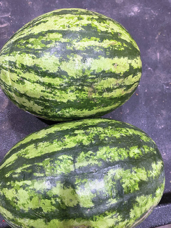 The main harvest varieties, taking 80 to 85 days to grow, are Charleston Gray, a red melon at 20 to 25 pounds; Crimson Sweet, a red at 20 to 25 pounds; Madera, a hybrid red at 14 to 22 pounds; Parker, another hybrid red at 22 to 25 pounds; Sangria, a hybrid red at 22 to 25 pounds; Sunny’s Pride, a hybrid red at 22 to 25 pounds; and Sweet Favorite, a hybrid red at 20 pounds.