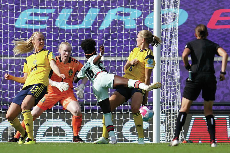 SHEFFIELD, England (AP) — Defending champion the Netherlands needed a late surge to beat Switzerland 4-1 and guarantee a place in the European Championship quarterfinals on Sunday, while Sweden qualified with ease in a 5-0 win over Portugal.