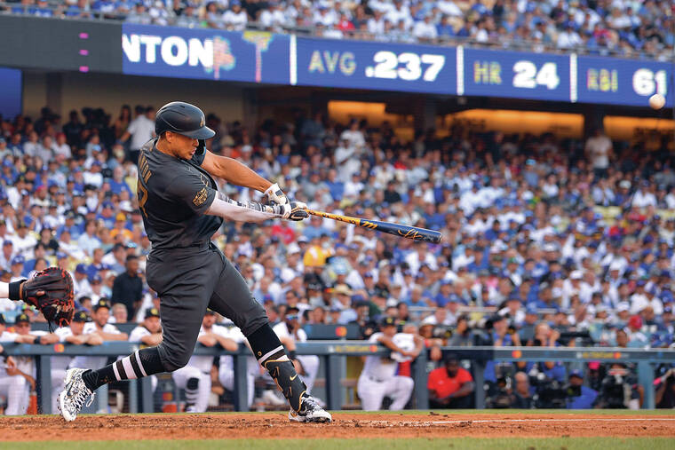 LOS ANGELES — Giancarlo Stanton homered into an especially sweet spot in his Dodger Stadium homecoming at the All-Star Game, putting his name alongside some of the sluggers he loved watching from the left field seats as a kid.