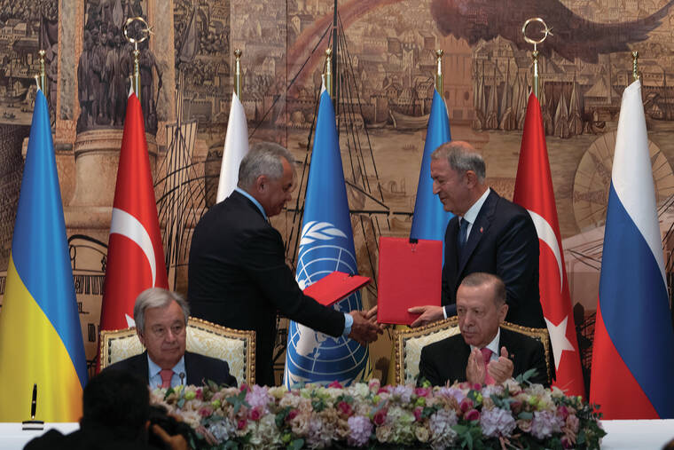ISTANBUL — Russia and Ukraine signed separate agreements Friday with Turkey and the United Nations clearing the way for the export of millions of tons of desperately needed Ukrainian grain — as well as some Russian grain and fertilizer — across the Black Sea. The long-sought deal ends a wartime standoff that has threatened food security around the globe.