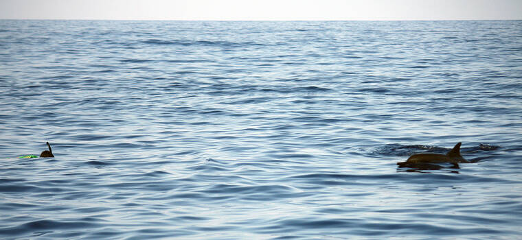 A Hawaiian spinner dolphin approaches a man on a dolphin swim in 2016. (West Hawaii Today/file photo)