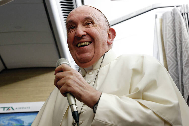 ABOARD THE PAPAL PLANE (AP) — Pope Francis acknowledged Saturday that he can no longer travel like he used to because of his strained knee ligaments, saying his weeklong Canadian pilgrimage was “a bit of a test” that showed he needs to slow down and one day possibly retire.