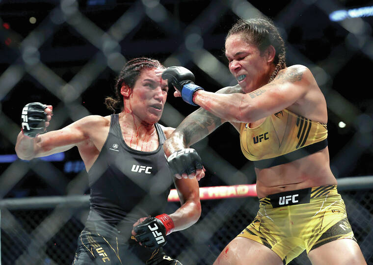Nunes had Peña on her back again for much of the fourth and fifth rounds. Peña’s face was streaked with blood that stained much of the mat.