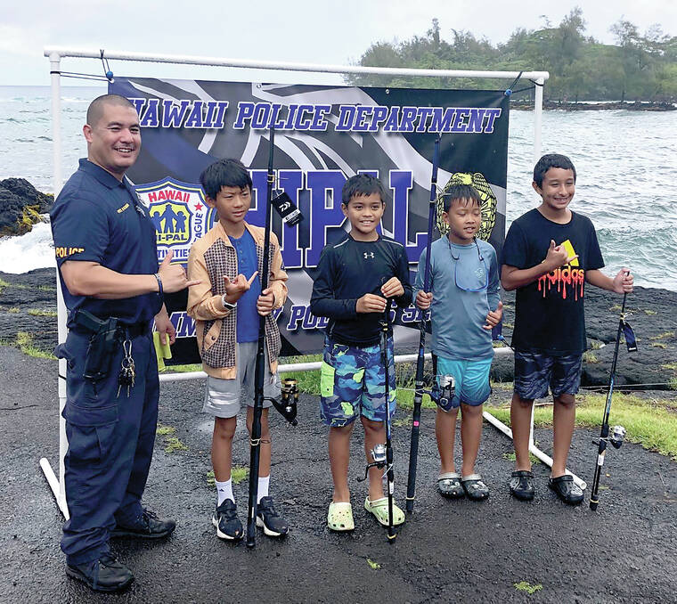 Participating students from Keaukaha, Ha‘aheo, Kaumana, Waiakeawaena, Kalaniana‘ole, and Ernest Bowen de Silva elementary schools, as well as Hilo Intermediate School, attended a two-day summer school fishing class taught by South Hilo School Resource and Community Policing Officers.