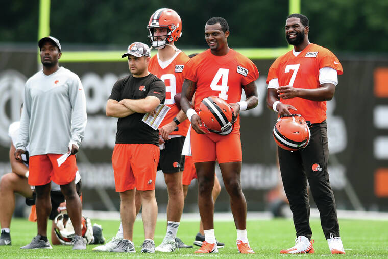 Watson is allowed to practice and play in exhibition games during his suspension. He continued to take most of the snaps with Cleveland’s first-team offense Monday, with backup Jacoby Brissett getting the others.