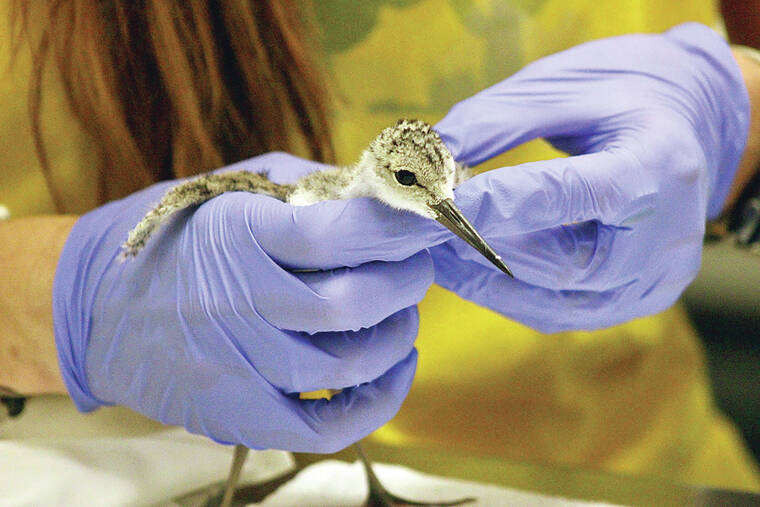 Aeʻo (Hawaiian Stilt) Chick intake exam at the Hawaii Wildlife Center. Courtesy photo/Special to West Hawaii Today