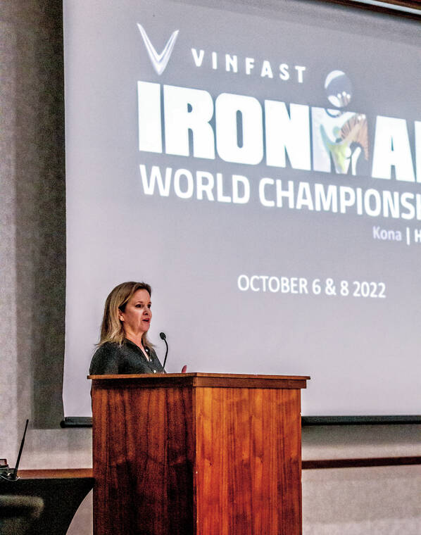 “This is a new beginning for us here on this island; we’re back,” Ironman World Championship Race Director Diana Bertsch told about 50 attendees of a talk story held Monday evening. “It’s been three years; it’s two days of racing: October 6 and October 8. That week will be packed.”