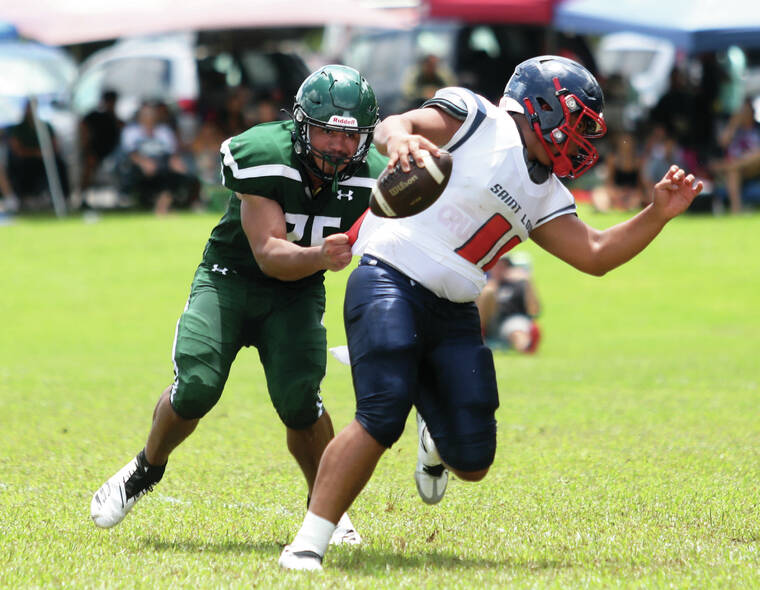 The sidelines and the shady spots under trees were filled Saturday with fans from Pahoa and Hilo — also invited — along with a clutch of St. Louis folks who jumped on the charter flight for the over-and-back taking in the first look at football for the 2022 season.