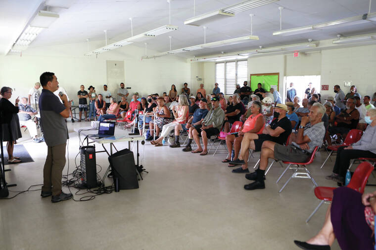 Dozens of Puna residents, many of them fishermen, gathered at Pahoa Community Center on Thursday for a public meeting about a predesign report for an eventual reopening of the ramp, which was cut off from the ocean in 2018 by a sandbar raised by lava entering the ocean during the Kilauea eruption that year.