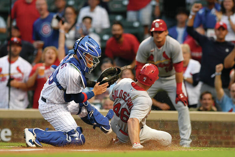 Dylan Carlson had a two-run triple as the Cardinals pulled away with six runs in the ninth. Chicago designated hitter Franmil Reyes came on for his first pitching appearance and hit pinch-hitter Albert Pujols with a 70 mph delivery, then got Paul Goldschmidt to hit into a double play and struck out Paul DeJong.