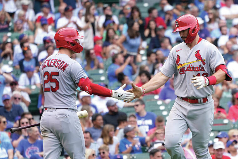 CHICAGO — Paul Goldschmidt slugged his 32nd and 33rd homers to highlight a five-RBI performance and position himself in the Triple Crown discussion, helping the St. Louis Cardinals roll to an 8-3 win Thursday over the Chicago Cubs.