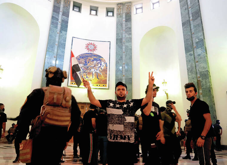 Protesters loyal to cleric Muqtada al-Sadr pulled down the cement barriers outside the government palace with ropes and breached the palace gates. Many rushed into the lavish salons and marbled halls of the palace, a key meeting place for Iraqi heads of state and foreign dignitaries.