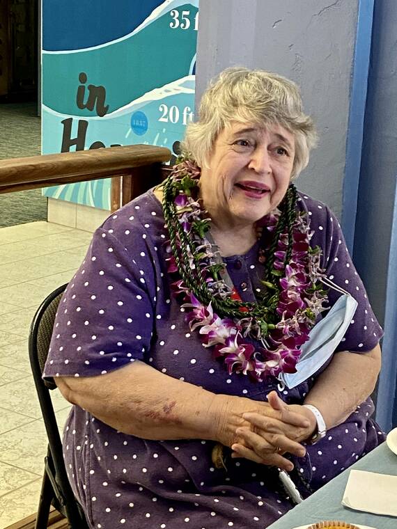 The Pacific Tsunami Museum in downtown Hilo recently honored docent Dian Mahoney for 18 years of service at the museum. A retired teacher and administrator, she has devoted hundreds of hours volunteering her time to educate the public with fascinating stories on tsunamis.