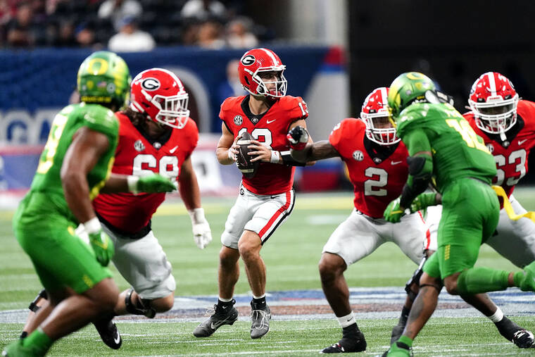 Oregon might still be one of the beleaguered conference’s best teams. The Ducks under former coach Mario Cristobal have recruited better than other Pac-12 team recently. But they’re not anywhere near what Georgia has built.