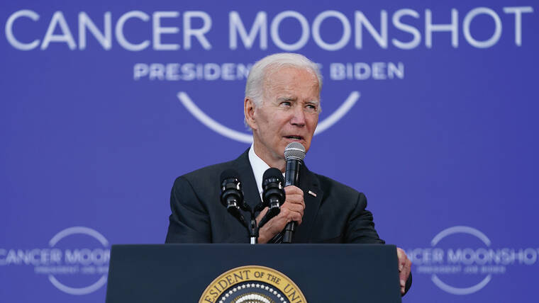 BOSTON — President Joe Biden on Monday urged Americans to come together for a new “national purpose” — his administration’s effort to end cancer “as we know it.”