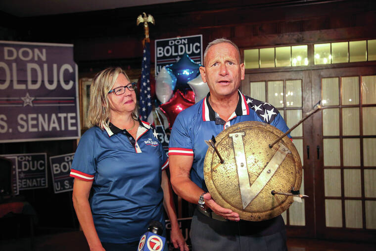 CONCORD, N.H. — Don Bolduc didn’t have much time to celebrate winning the Republican nomination for Senate in New Hampshire on Wednesday before he and other swing-state GOP candidates were on the defensive.