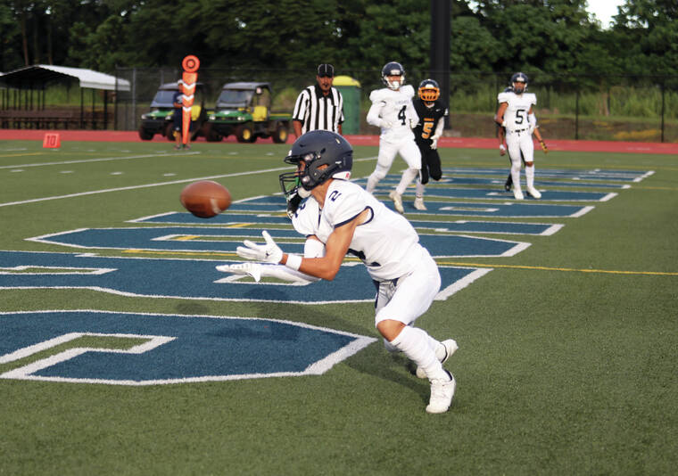 Warrior quarterback Michael Perry threw three touchdown passes to Ty Watterson, Shiloh Santos and Kekoa Ah Loy. Running back Ethan Bowden scored the other two touchdowns of the night.