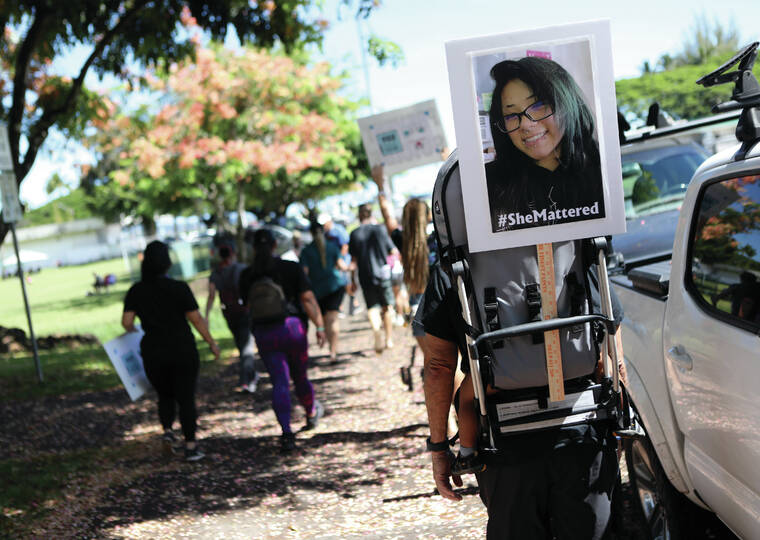 The tone of the walk is far from somber as cheers and car horns honk in support of the group as they follow the one-mile loop from the Aupuni Center down Kamehameha Avenue and back via Kilauea Avenue.