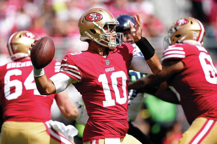SANTA CLARA, Calif. — After the shock of losing starting quarterback Trey Lance to a season-ending injury wore off, the San Francisco 49ers looked awfully familiar with Jimmy Garoppolo back at quarterback.