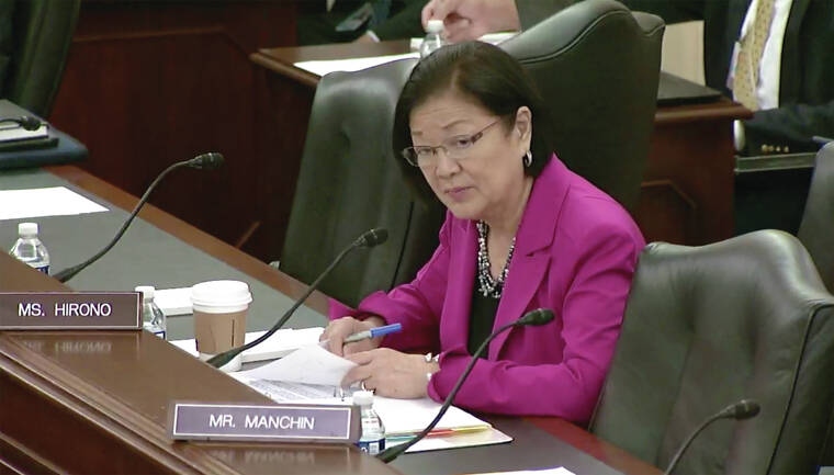 Sen. Mazie Hirono speaks Wednesday at a Senate Veterans Affairs Committee hearing in Washington, D.C.