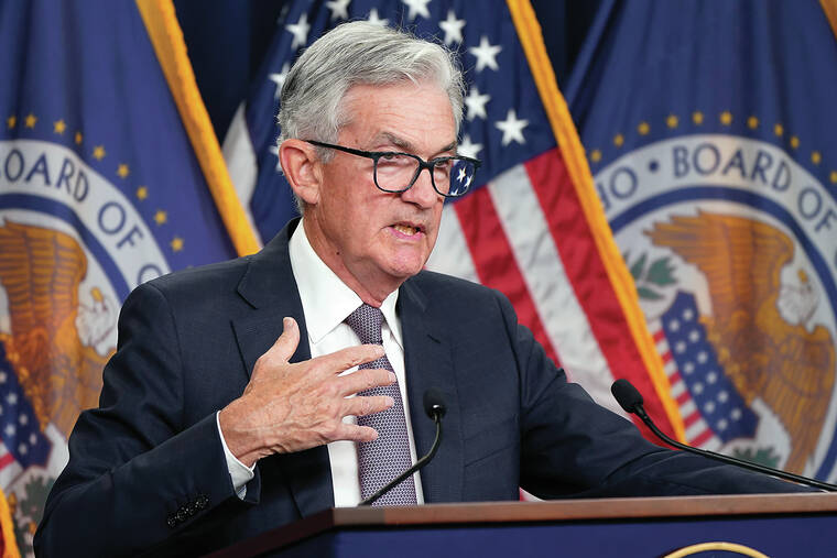 WASHINGTON — Intensifying its fight against high inflation, the Federal Reserve raised its key interest rate Wednesday by a substantial three-quarters of a point for a third straight time and signaled more large rate hikes to come — an aggressive pace that will heighten the risk of an eventual recession.