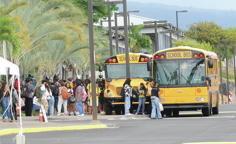 Kealakehe High School students leave school Thursday afternoon. (Laura Ruminski/West Hawaii Today)