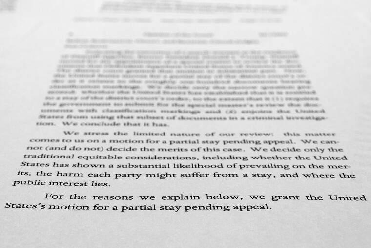 WASHINGTON — In a stark repudiation of Donald Trump’s legal arguments, a federal appeals court on Wednesday permitted the Justice Department to resume its use of classified records seized from the former president’s Florida estate as part of its ongoing criminal investigation. The ruling from a three-judge panel of the U.S. Court of Appeals for the 11th Circuit amounts to an overwhelming victory for the Justice Department, clearing the way for investigators to continue scrutinizing the documents as they consider whether to bring criminal charges over the storage of of top-secret records at Mar-a-Lago after Trump left the White House. In lifting a hold on a core aspect of the department’s probe, the court removed an obstacle that could have delayed the investigation by weeks.