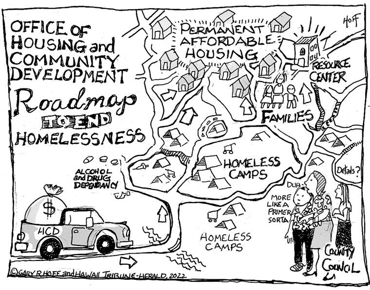 The Big Island as seen by Hawaii Tribune-Herald cartoonist Gary Hoff.