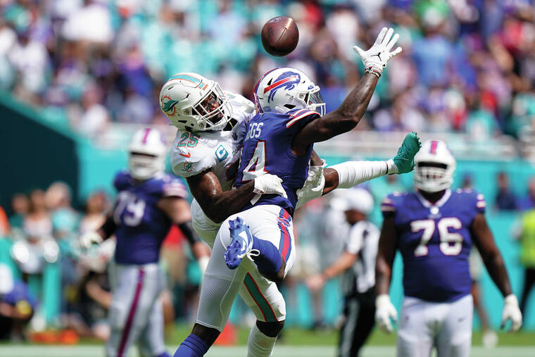 The Dolphins’ defense did just enough to stall Allen twice in the fourth quarter, the first effort a goal-line stand that followed a go-ahead rushing touchdown by Miami’s Chase Edmonds.