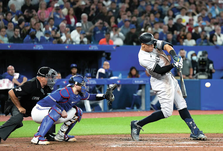 Judge moved past the 60 home runs Babe Ruth hit in 1927, which had stood as the major league mark until Maris broke it in 1961. All three stars reached those huge numbers playing for the Yankees.