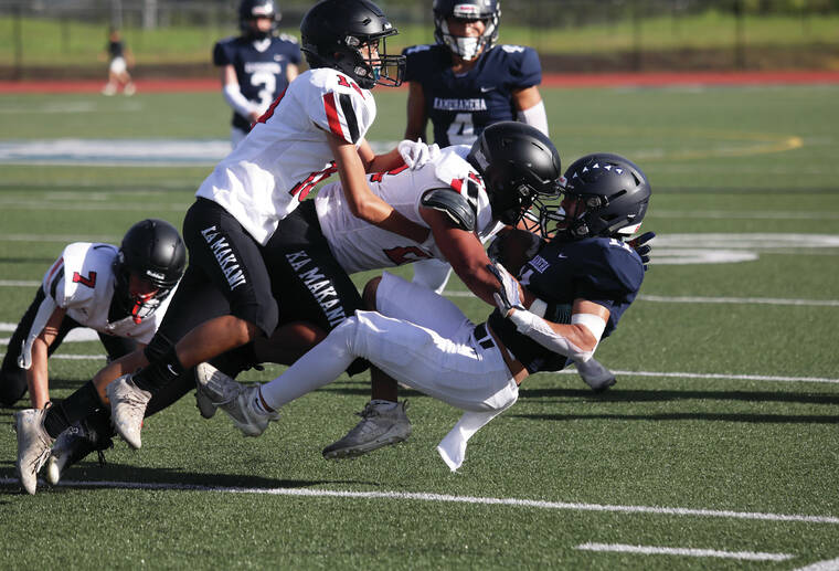 The defending BIIF champions, Ka Makani is led by a newcomer of sorts, sophomore Alaka‘i Aipia, who plays all over the field, is their leading kickoff and punt returner, usually takes the snap in the wildcat formation and is integral on defense.