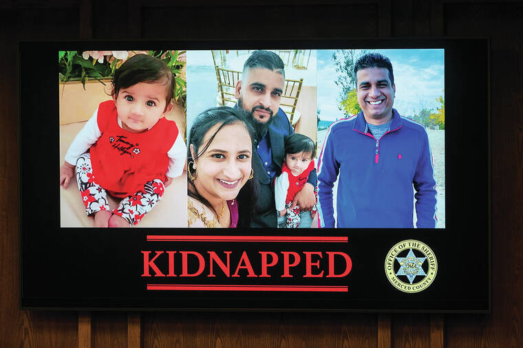 SAN FRANCISCO — A baby girl, her parents and uncle who were kidnapped at gunpoint from their central California business two days ago were found dead Wednesday, the sheriff of Merced County said.
