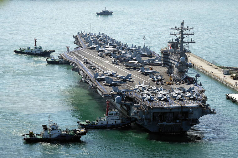 SEOUL, South Korea — North Korea launched two short-range ballistic missiles toward its eastern waters Thursday after the United States redeployed an aircraft carrier near the Korean Peninsula in response to Pyongyang’s previous launch of a nuclear-capable missile over Japan.