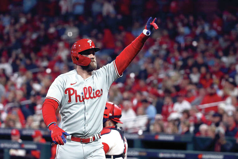 ST. LOUIS — The Phillies wasted no time taking their raucous celebration from the infield at Busch Stadium, where the Cardinals had trudged off to mourn the end of an era, into the visiting clubhouse, where the champagne flowed freely and Calum Scott’s “Dancing On My Own” pounded through the speakers.