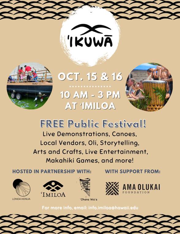 ‘Ikuwa Festival is a free-admission event for the public and will feature informational and hands-on activity booths, local vendors and food.