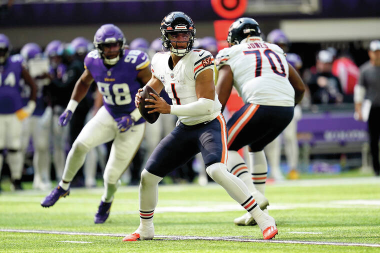 It was an encouraging step for Fields, who ranks at or near the bottom among starting quarterbacks in just about every important passing category. He helped the Bears (2-3) rally from 18 down against Minnesota to grab a 22-21 lead and had them driving after a late touchdown run by Kirk Cousins that put the Vikings back on top.