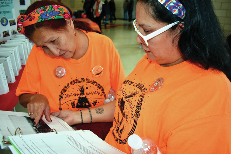 Former St. Francis student Ruby Left Hand Bull Sanchez traveled hundreds of miles from Denver to attend Saturday’s meeting. She cried as she recalled almost being killed as a child when a nun stuffed lye soap down her throat in response to Sanchez praying in her native language.