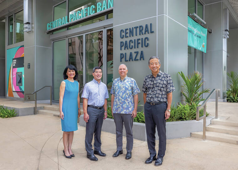 From left to right are Catherine Ngo, David Morimoto, Arnold Martines, Paul Yonamine of Central Pacific Bank. Martines, a Big Island native, becomes CEO of the bank in January.