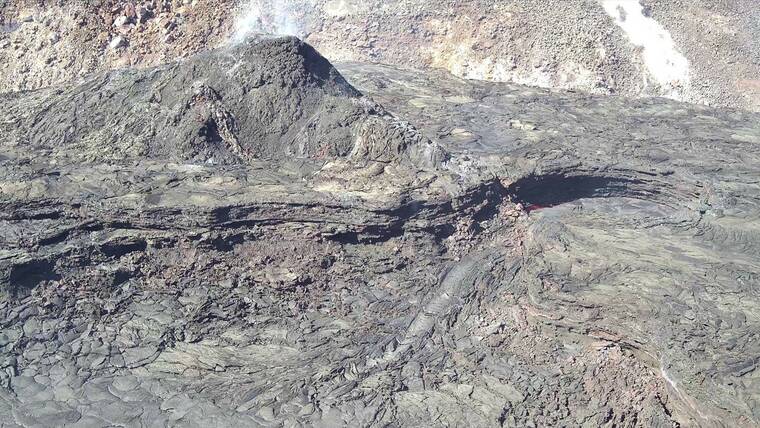 The last pause to date occurred on March 18, and since then there has been truly (or mostly truly) continuous lava effusion. The crater floor has also continued to rise due to lava spreading from the active lake to areas beneath the crust. This “endogenous” injection of lava lifts the crater floor, like the inflation of an air mattress.