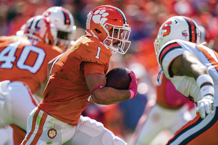 Uiagalelei had his worst game of the season with two interceptions — he had two in the first seven games — and a fumble that Syracuse (6-1, 3-1) returned for a 90-yard scoop and score as the Tigers fell behind 21-7.