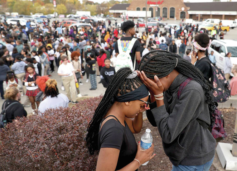 ST. LOUIS — An armed former student broke into a St. Louis high school Monday morning warning, “You are all going to die!” before fatally shooting a teacher and a teenage girl, and wounding seven others before police killed him in an exchange of gunfire.