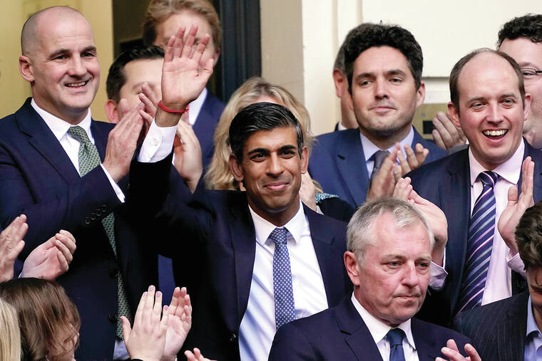 LONDON — Former Treasury chief Rishi Sunak is set to become Britain’s first prime minister of color after being chosen Monday to lead a governing Conservative Party desperate for a safe pair of hands to guide the country through economic and political turbulence.