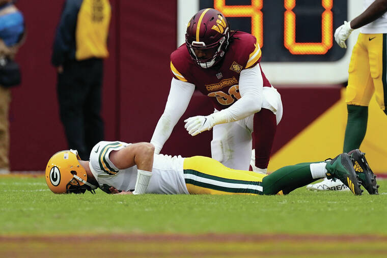 When rookie receiver Romeo Doubs dropped a low pass that would’ve extended a drive for Green Bay, Rodgers was visibly frustrated and cursed on his way to the sideline. The Packers only trailed by a field goal and there was plenty of time to rally. Instead, inferior Washington held on for a 23-21 victory.