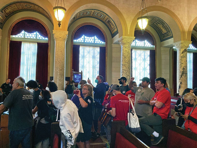 Council President Paul Krekorian warned the protesters they would not deter the council’s business. “We will continue to do the work of the people of Los Angeles,” he said.