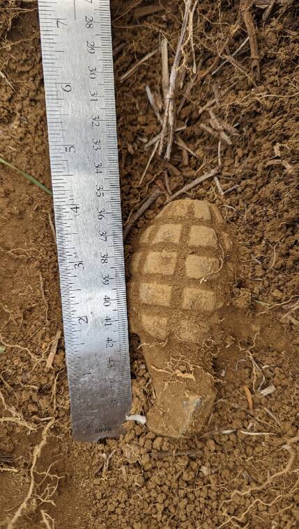 Since beginning work in Waimea, Zulick said the Corps has turned up eight MK 2 hand grenades — the standard-issue fragmentation grenade used by U.S. armed forces in WWII — and one 60-mm mortar round. The specific sites where these weapons were found were not disclosed, although in April Zulick reported that a 60-mm mortar and seven grenades had been found on a rural property immediately south of Waimea.