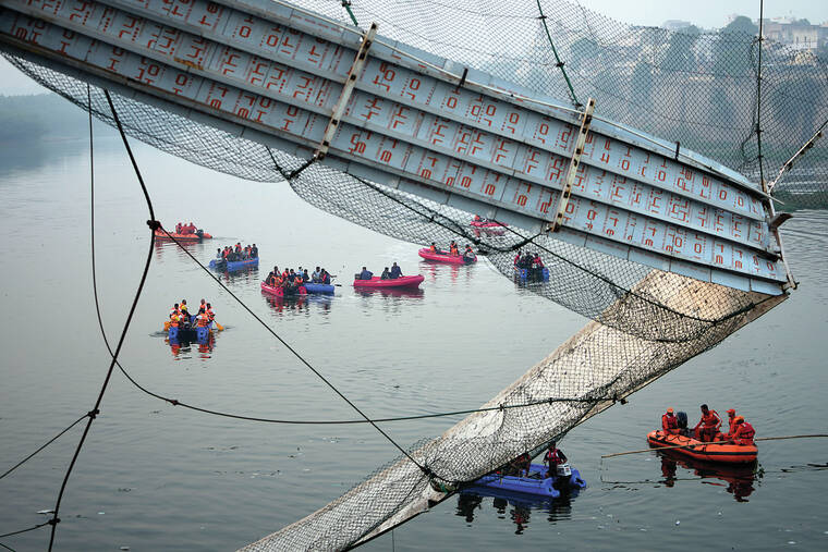 MORBI, India — Police in western India arrested nine people on Monday as they investigated the collapse of a newly repaired 143-year-old suspension bridge in one of the country’s worst accidents in years, officials said. The collapse Sunday evening in Gujarat state plunged hundreds of people into a river, killing at least 134.