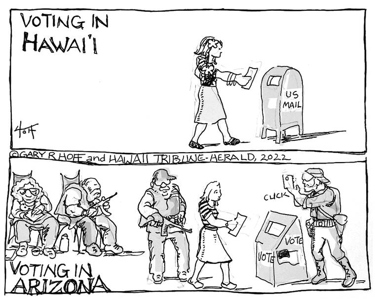 The Big Island as seen by Hawaii Tribune-Herald cartoonist Gary Hoff.