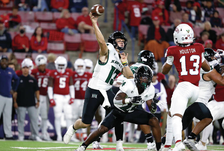 FRESNO, Calif. (AP) — Jake Haener completed 24 of 29 passes for 327 yards and four touchdowns and Jordan Mims had 123 yards rushing and a TD on 18 carries to help Fresno State beat Hawaii 55-13 Saturday night.