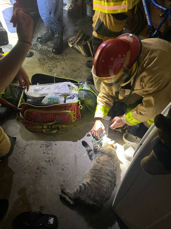 When a Saturday evening stove fire caused an estimated $50,000 damage to a Desha Avenue home in the Keaukaha area in Hilo, firefighters were able to save something no amount of money can replace — a pet cat named Ceci.