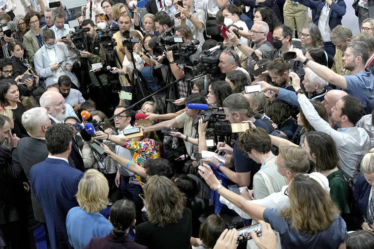 SHARM EL-SHEIKH, Egypt — Negotiators early Sunday approved a historic deal that would create a fund for compensating poor nations that are victims of extreme weather worsened by rich countries’ carbon pollution, but an overall larger agreement still was up in the air because of a fight over emission reduction efforts.